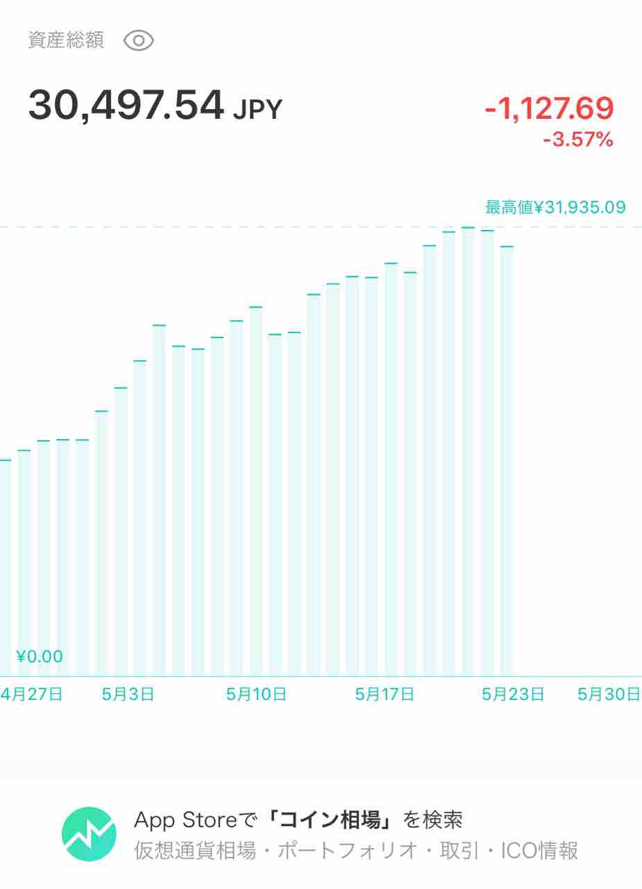 【悲報】コイン積立経過43日目 2018年05月23日 06:17 悲報です。下落っぷりが止まりません⤵︎ただし、タイトルに悲報とは書きましたが、ここで辞めることはありません。考え方の問題です!私的な考え方はココが買い時だ!このくらいの下落でへこたれはしません。積立金額は、28,681円含み益は、1,816円だいぶ含み益がなくなりましたね。この下落の傾向も含めてしっかり注視していきたいと思います。今後の戦略!コイン積立と平行してついにあれに手を出してみようと思います。さ〜このブログの方向性が分からなくなってきました。楽しみにしてて下さい! 「仮想通貨」カテゴリの最新記事 タグ :コイン積立 < 前の記事次の記事 > コメント コメントフォーム 名前 メール URL コメント 評価する リセット リセット 顔 星 投稿する 情報を記憶